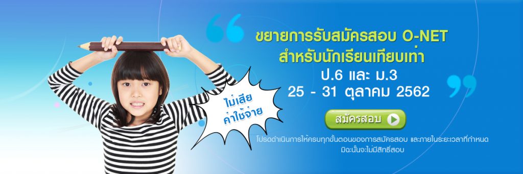 ขยายการรับสมัครสอบ ONET สำหรับนักเรียนเทียบเท่า ป.6 และ ม.3